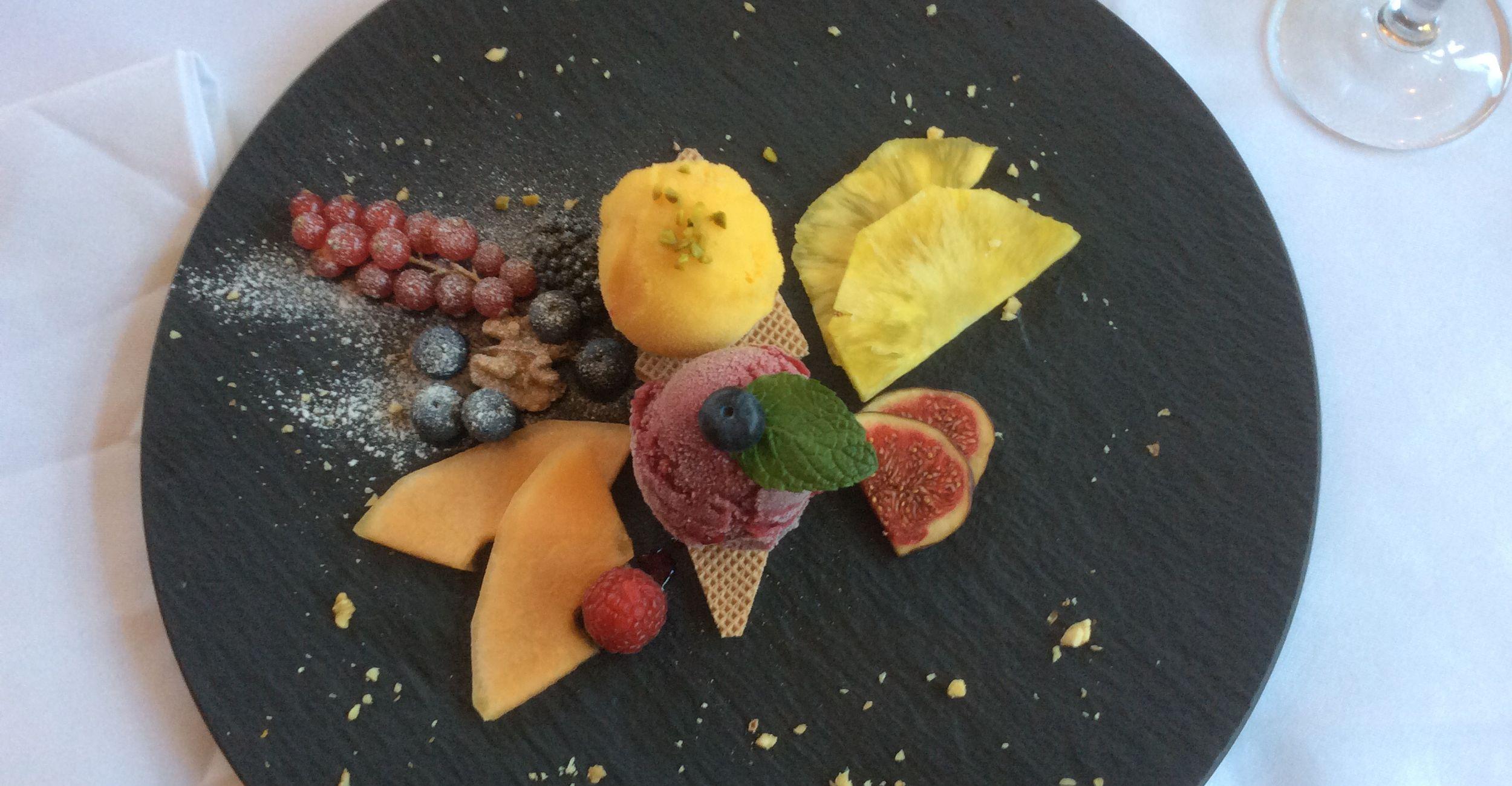 - Filet vom Bachsaibling mariniert in Limoncello und Chili, dazu ein Kräutersößchen und Petersilienkartoffeln